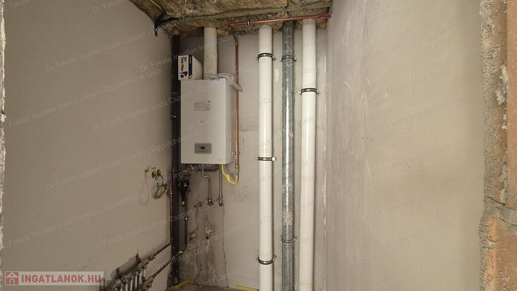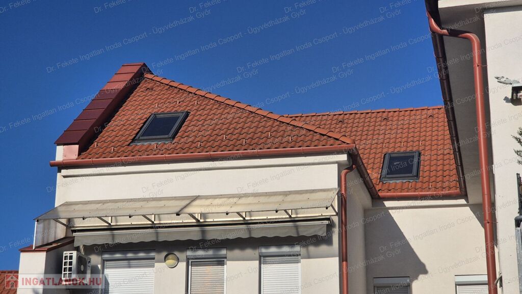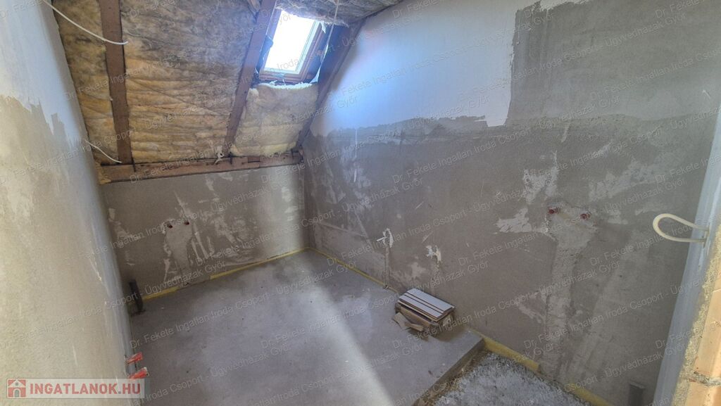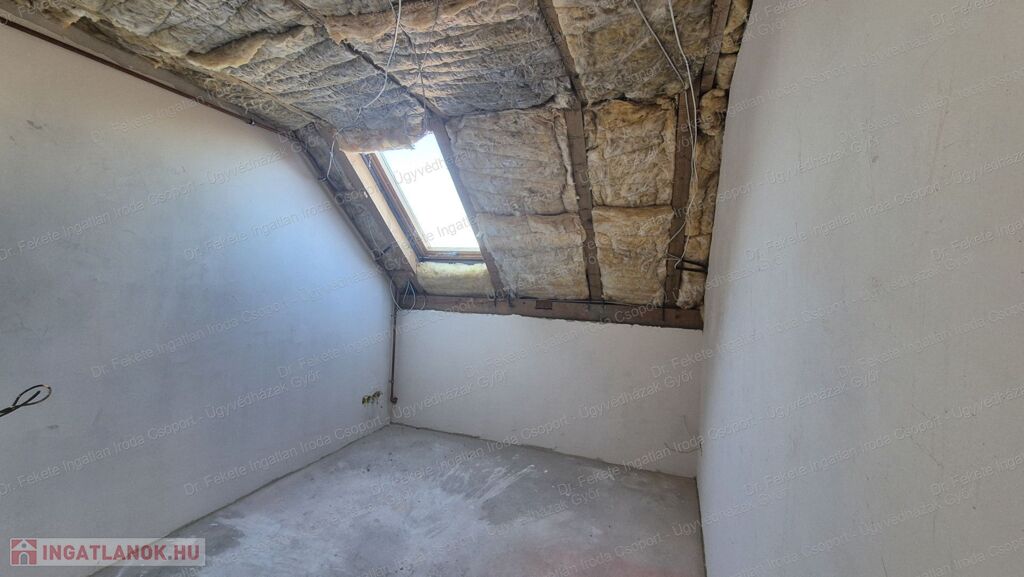 a nappali + 2 szobás, hátsó udvarra néző tetőtéri téglalakás fűtéskészen.