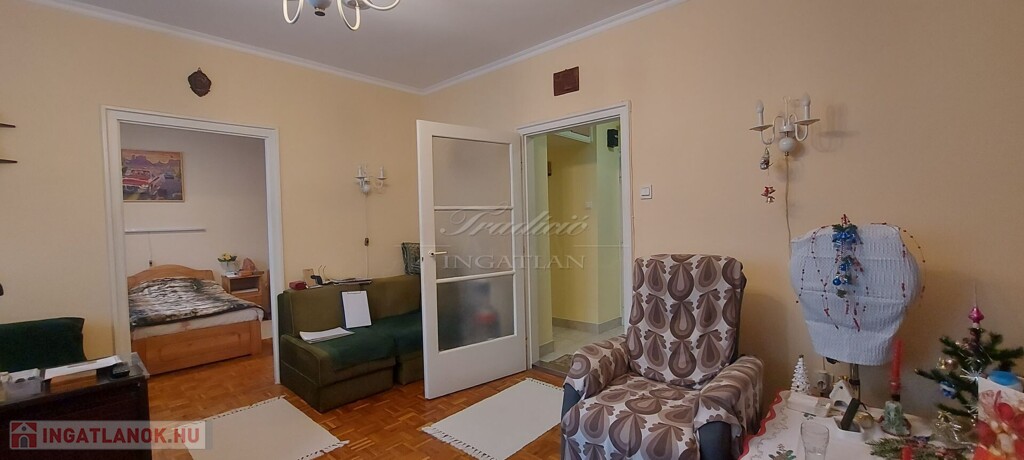 A lakás egy 1968-ban épült, tégla szerkezetű, mindössze 8 lakásos társasház első emeletén található. Az ingatlan 61 m2-es, 3 szoba-konyhás, külön fürdővel és mellékhelyiséggel, kamrával, kifejezetten jó-és logikus elosztással, beépített szekrényekkel.
