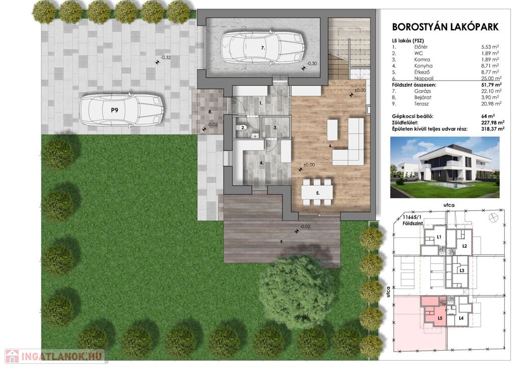 Győr-Révfaluban, a Bálványosi csatorna szomszédságában, 8 lakásból álló társasházban kétszintes, 128,95 m2-es, 3 hálószobával, gardróbbal, tágas nappali + konyha + étkező kialakítással, kamrával, különálló fürdőszobával és toalettel, két erkéllyel, egy 20,98 m2-es terasszal és egy saját 212,8 m2 udvarrésszel rendelkező, prémium minőségű, ÚJ ÉPÍTÉSŰ lakás eladó.