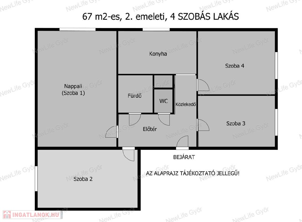 Marcal 1-en vár Téged egy jó és lakható állapotú, 67 m2-es, 2. emeleti, 4 szobás, világos lakás