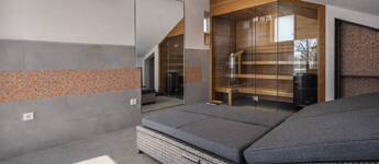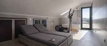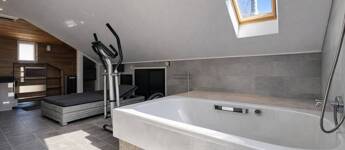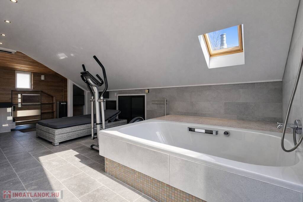 TETŐTÉR: wellness-részleg (finn szauna, kétszemélyes kád), tetőterasz merülőkáddal
