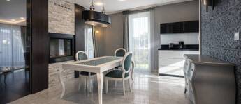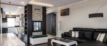 - Bioetanolos látványkandalló és üvegfal a nappali–étkező között