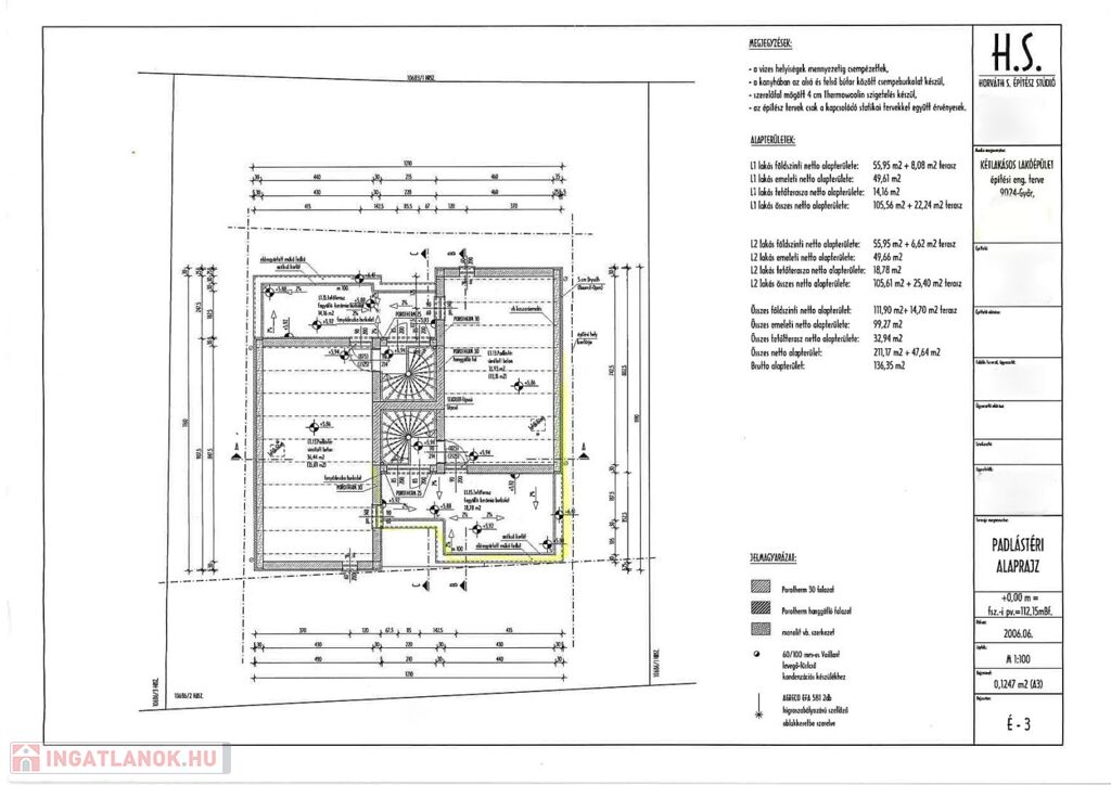 A 137,54 m² lakótérhez 6,62 m² földszinti terasz és 18,78 m² tetőterasz tartozik.