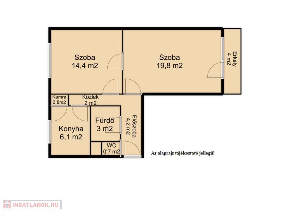 Az ingatlan elosztása: 2 szoba külön nyíló bejárattal, konyha, fürdőszoba, külön WC, illetve egy erkély.