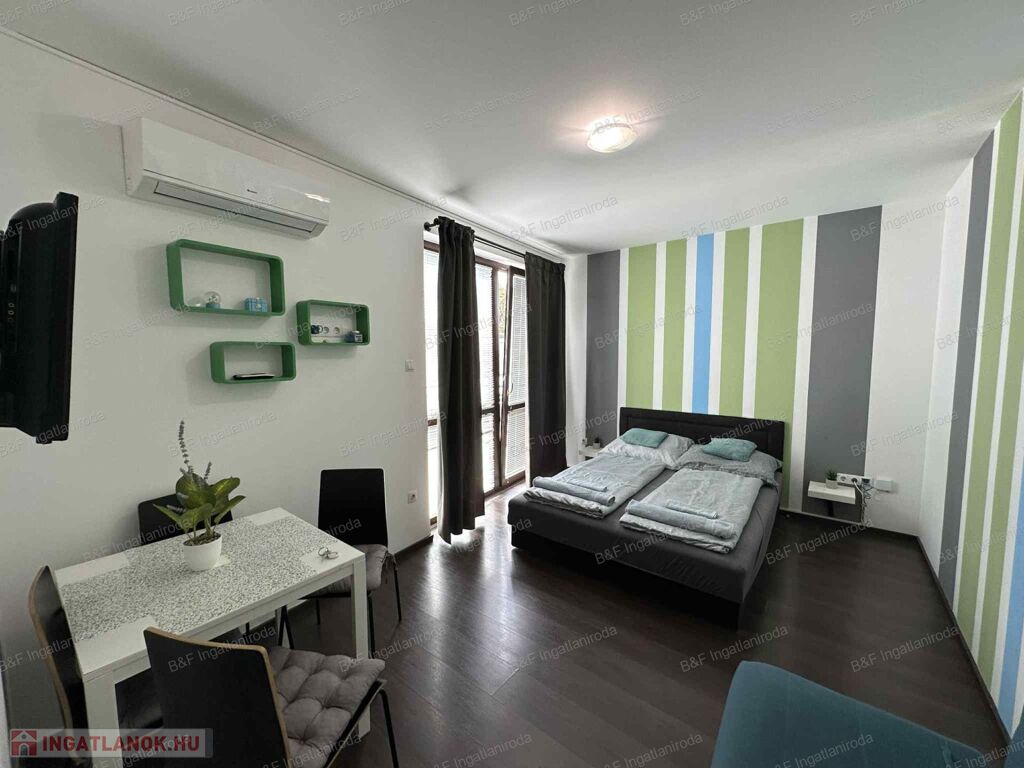 Az első emeleti ingatlan 27 m2, de jó kialakítása miatt tágasabb érzést nyújt. Az árban a berendezés is benne van, így Önnek valóban csak a vendéget kell fogadnia.