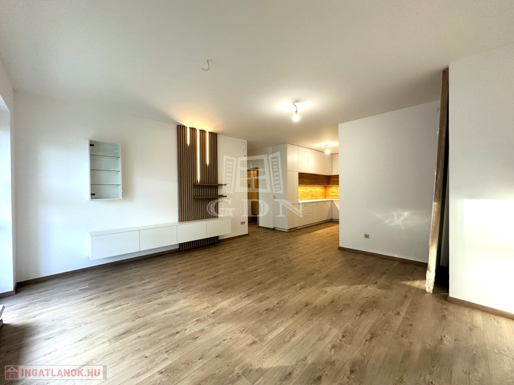 A 13-as számú lakás nettó fűtött alapterülete 81 m2, melyhez egy fantasztikus, kuriózumnak tekinthető 53 m2-es erkély is tartozik. A lakásban a tágas és világos amerikai konyhás nappalin túl további 2 szoba, előtér, fürdőszoba, mellékhelyiség, közlekedő és egy kamra került kialakításra.