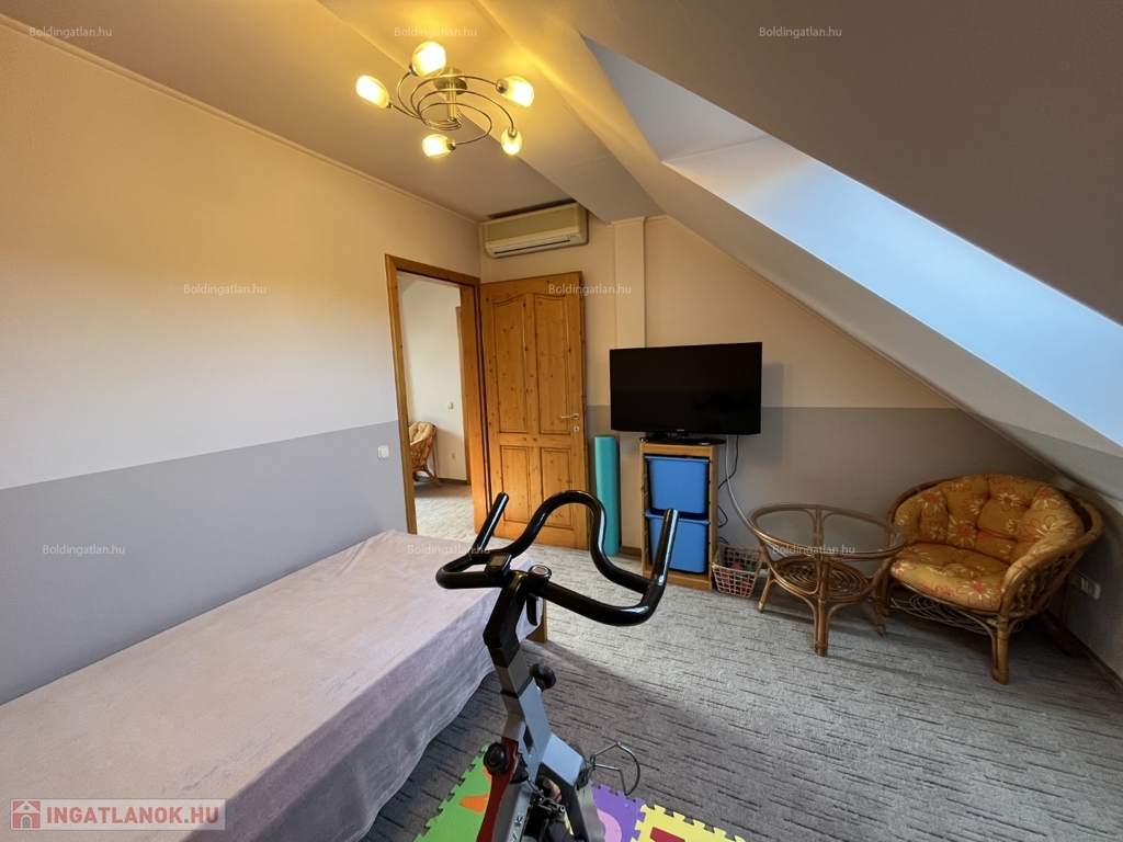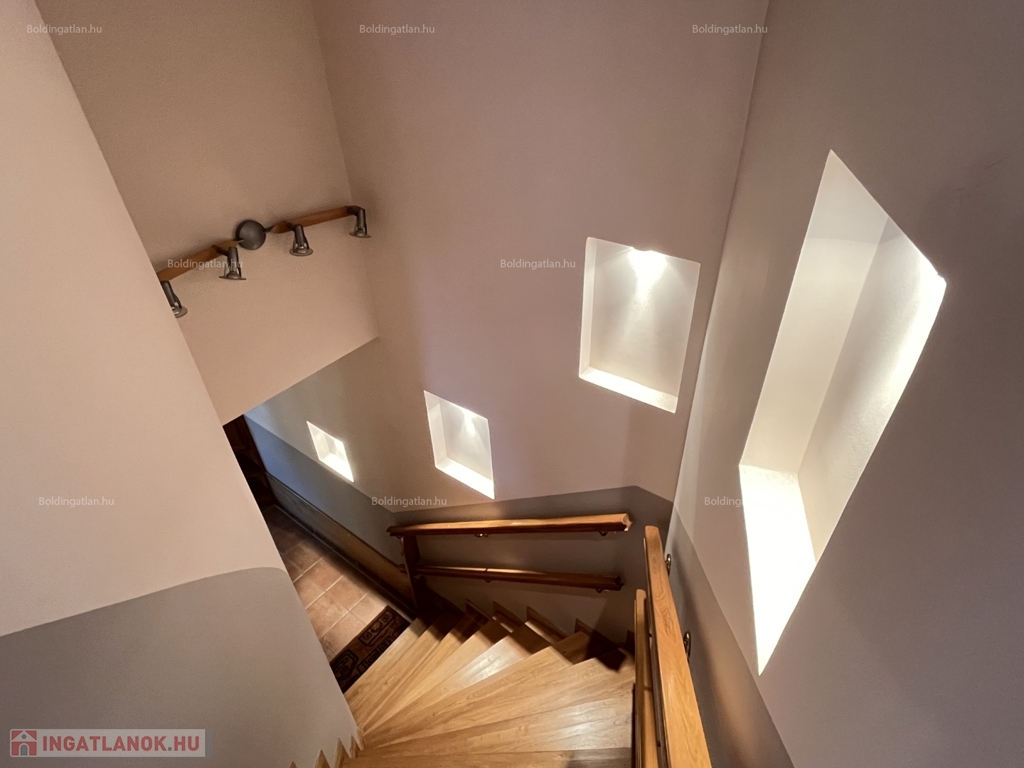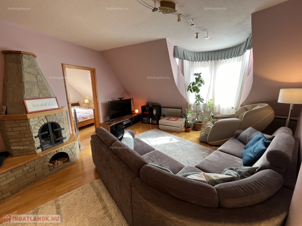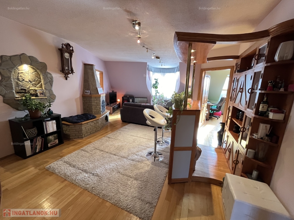 Kaposváron a belvárosban, - Fő utcában a kórház közelében - liftes társasház 3. emeletén lévő 135 m2-es kétszintes jó állapotú, alacsony rezsijű lakás eladó. Az alsó szinten előszoba, légkondícionált nappali - látványkandallóval, 2 félszoba, kis gardrób, étkező-konyha beépített konyhabútorral és gépekkel, fürdőszoba-zuhanyzó, nagy előszoba, kis fedett terasz, mosókonyha-wc-pissoir helyiségek találhatóak. A lakás emeleti részében kis nappali, 2 szoba - mindkettő légkondícionálóval ellátott -, fürdőszoba-wc, gardrób helyiségek vannak. A lakás fűtése - Viessmann kombi kazánnal van megoldva, a nappaliban és a felső szinten lévő 2 szobában Sanyo légkondícionáló van felszerelve, illetve riasztó is van. A lakáshoz továbbá 10.000.000.- Ft áron vásárolható a ház alatti mélygarázsban 2 db - egy kisebb és egy nagyobb személyautó részére - beállóhely, illetve tartozik hozzá egy önálló tároló is.