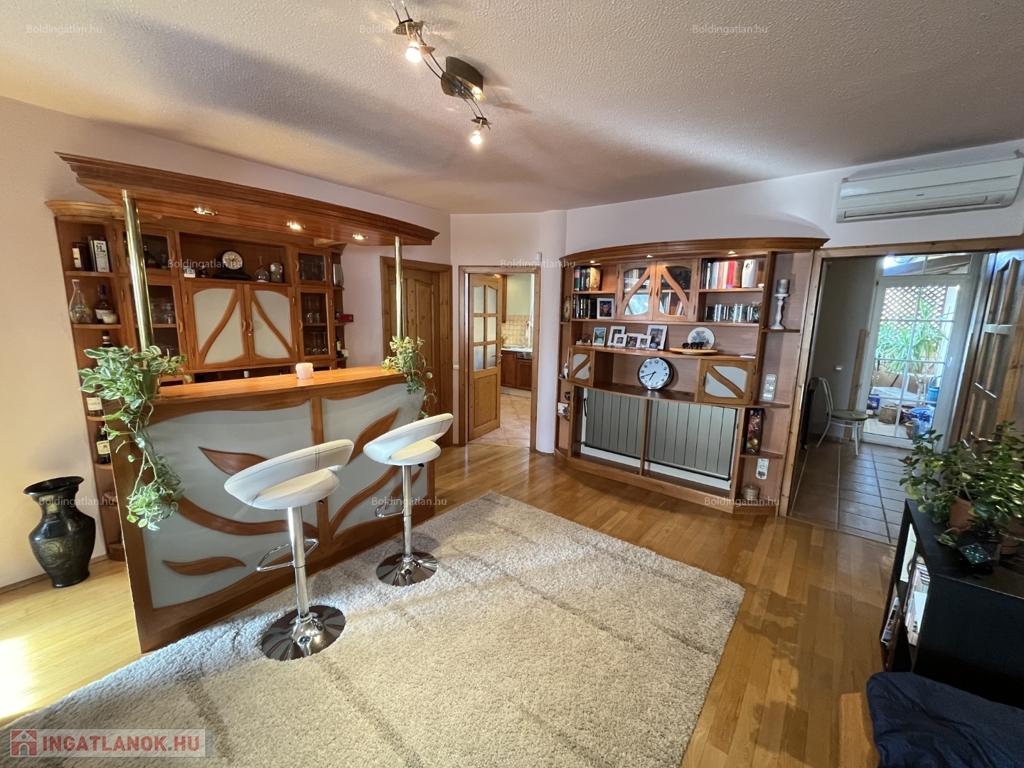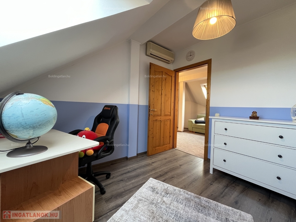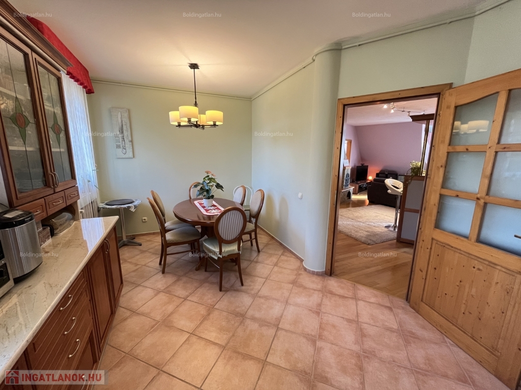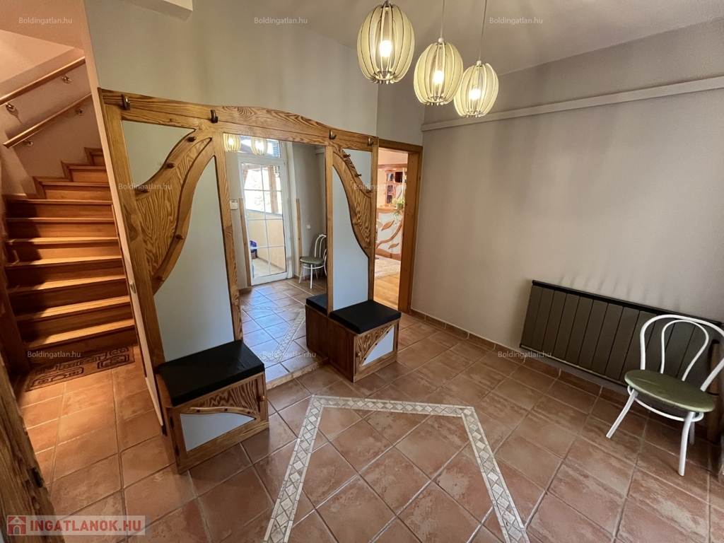 Kaposváron a belvárosban, - Fő utcában a kórház közelében - liftes társasház 3. emeletén lévő 135 m2-es kétszintes jó állapotú, alacsony rezsijű lakás eladó. Az alsó szinten előszoba, légkondícionált nappali - látványkandallóval, 2 félszoba, kis gardrób, étkező-konyha beépített konyhabútorral és gépekkel, fürdőszoba-zuhanyzó, nagy előszoba, kis fedett terasz, mosókonyha-wc-pissoir helyiségek találhatóak. A lakás emeleti részében kis nappali, 2 szoba - mindkettő légkondícionálóval ellátott -, fürdőszoba-wc, gardrób helyiségek vannak. A lakás fűtése - Viessmann kombi kazánnal van megoldva, a nappaliban és a felső szinten lévő 2 szobában Sanyo légkondícionáló van felszerelve, illetve riasztó is van. A lakáshoz továbbá 10.000.000.- Ft áron vásárolható a ház alatti mélygarázsban 2 db - egy kisebb és egy nagyobb személyautó részére - beállóhely, illetve tartozik hozzá egy önálló tároló is.