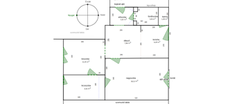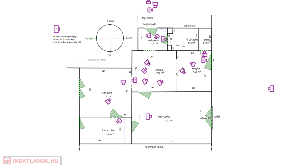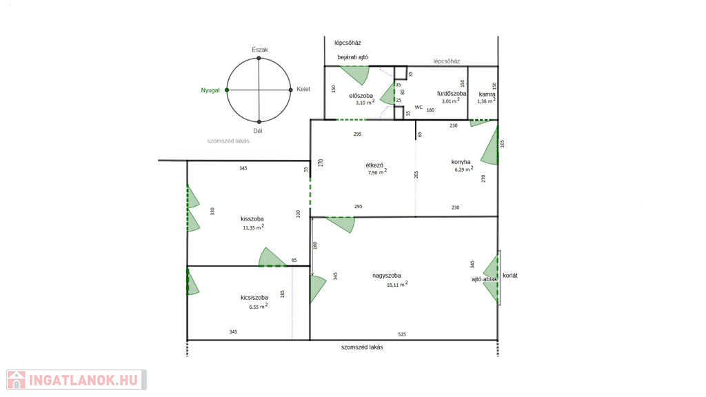Az alaprajzon látható hosszúsági számok mérőszalaggal mért nem tökéletes adatok, kerekítettek és centiméterben értendők.