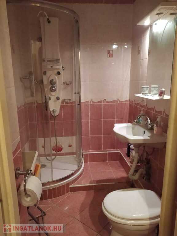 A fürdőszobában automata mosógéphez való bekötés van, hidegvíz és lefolyó.