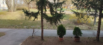 A lakás kb. kelet-nyugati fekvésű, keletre: 3 oldalról 2-3 emeletes 'U' alakban egybeépített házakkal körbevett,