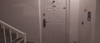 A bejárati ajtó kémlelővel, csengővel, megvilágítható zárral ellátott fémajtóval lett kicserélve.