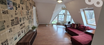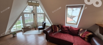 A nappaliban különleges kialakítású ablakok, reggeli kávéját napsütésben, a hangulatos nappali-konyhában élvezheti.