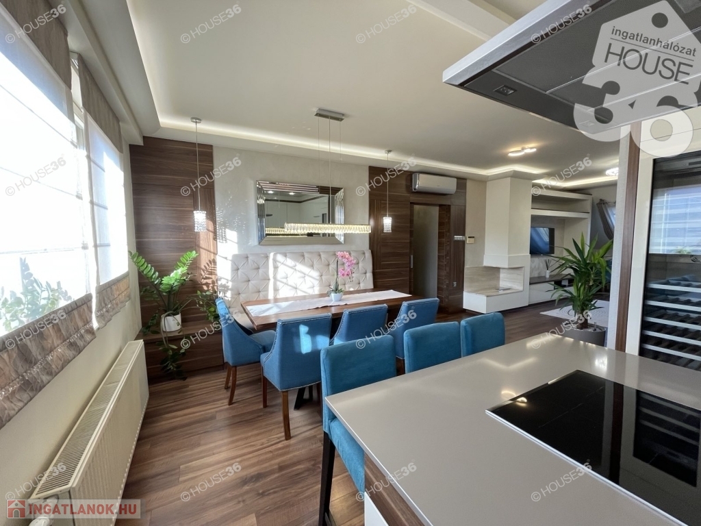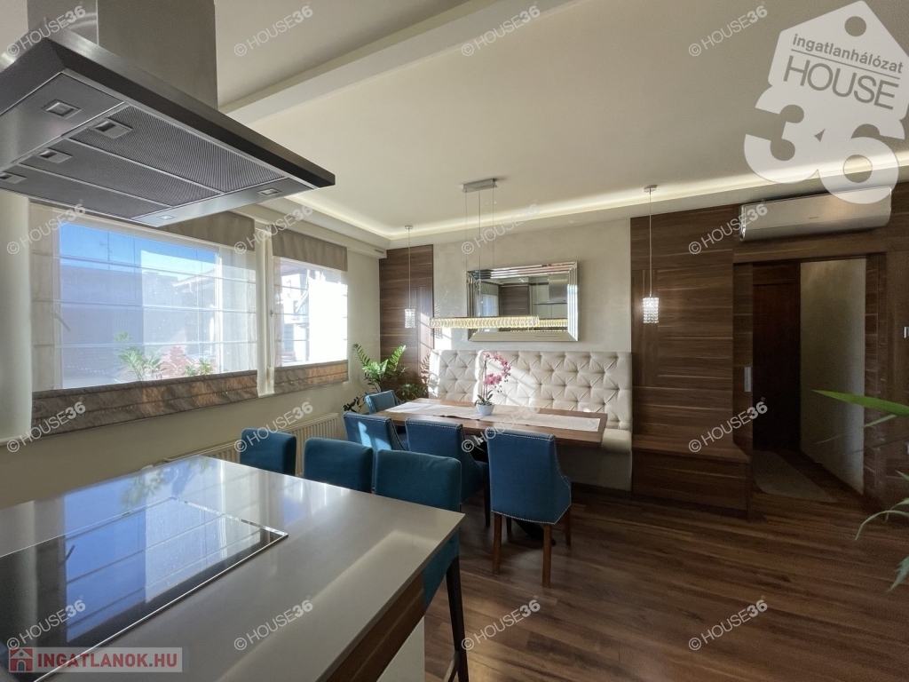 A lakás bruttó 93 m2, lakberendező által kialakított, prémium minőségű, ottmaradó beépített stílusos, egységes bútorzattal, magas színvonalú gépekkel felszerelve!