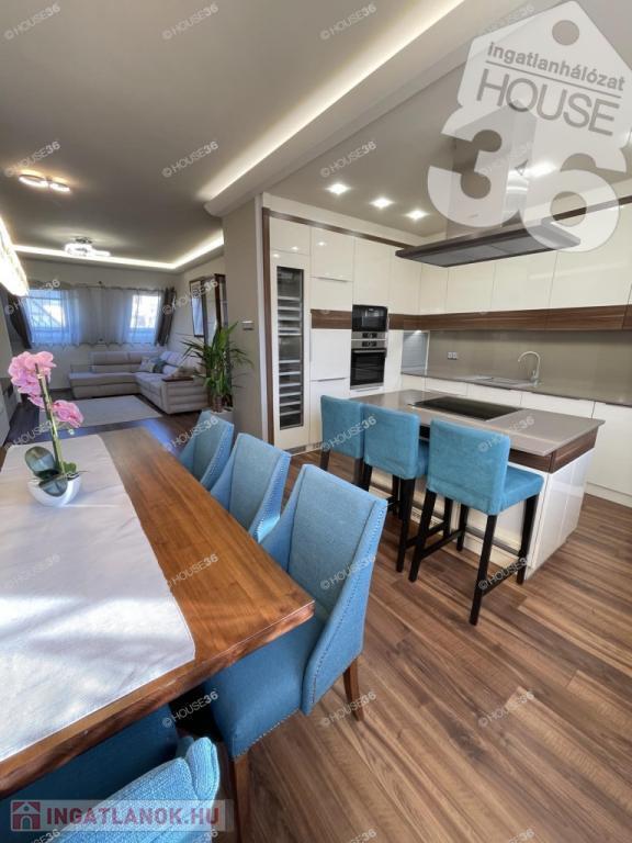 Nappali + 3 szoba, garázs, fürdő, tágas nappali étkező, amerikai konyha.