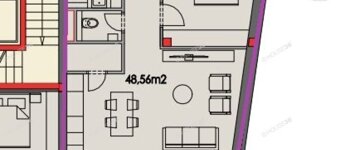 Az épület első emeletén, 48,56 m2 lakóterű, nappali + 1 szobás lakás, 7,25 m2 erkéllyel megvásárolható.