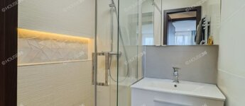 -Tágas, igényesen kialakított zuhanyzós fürdőszóba, Hansgrohe csapteleppel.