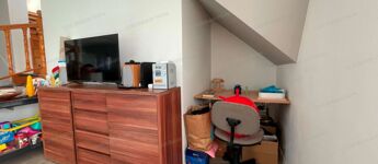- szint 2: lépcsőfordulónál tároló, 2 szoba, folyosó, fürdőszoba zuhanyzóval, külön WC