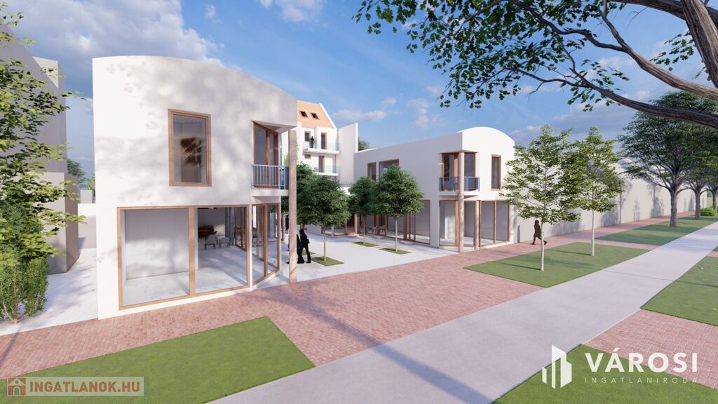 A társasház jellemzői: földszinti lakások és üzlethelyiségek, következik 3 szint plusz tetőtér.