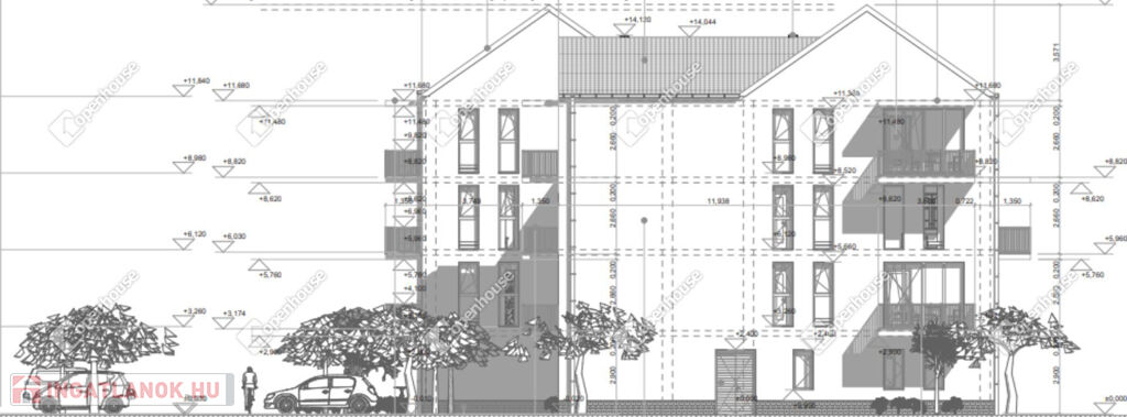 Komáromban épülő új 15 lakásos társasház mely 43nm-67nm-es kialakításúak, 15 tároló egységgel, erkéllyel (egy lakás két erkélyes kivitelezésű)és kültéri térfelszíni gépjármű parkolóval tervezett ingatlan a város központhoz közeli zöldövezeti részén helyezkedik el.