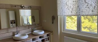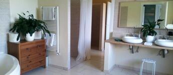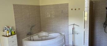Első fürdőszobában: sarokkád + zuhanyzó + dupla mosdó 12,87 nm-en