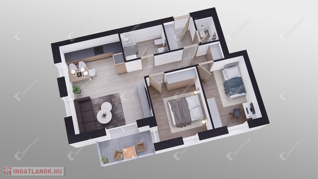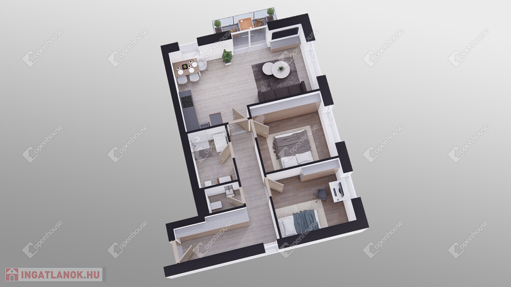 Nappali + 2 hálószoba