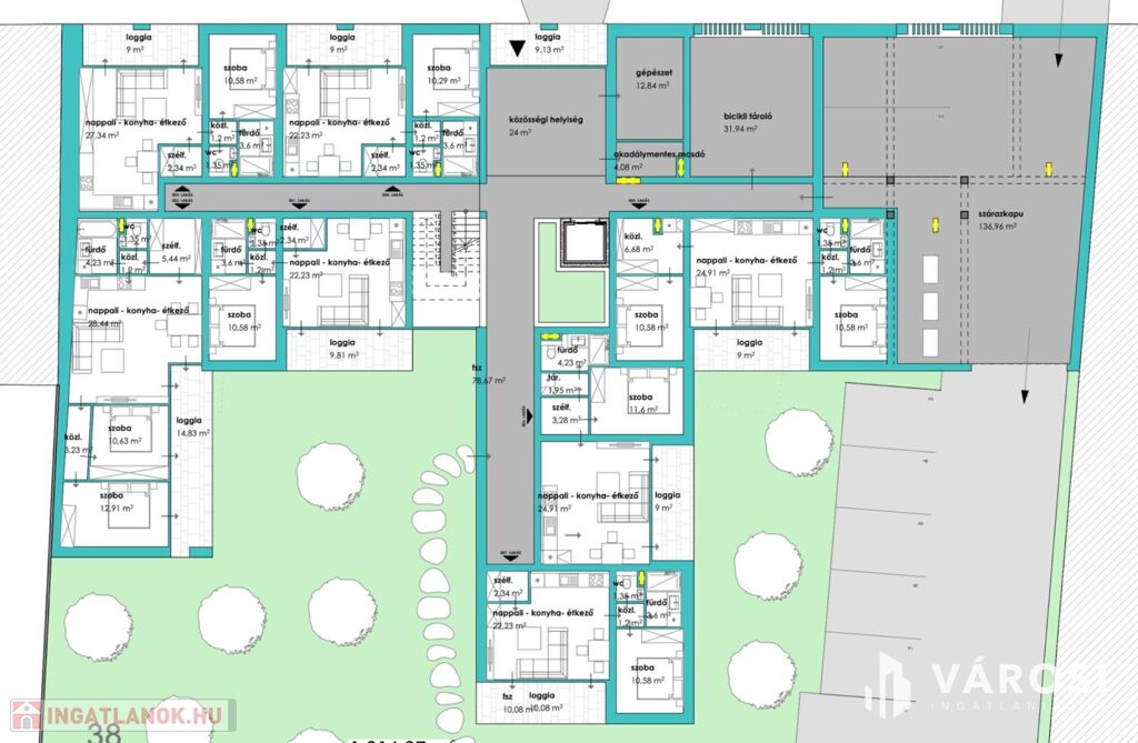 Makón, presztizs lokációval rendelkező - Makói fürdőtől 30 méterre - a Szent János téren, Eladó egy most induló, tégla építésű, FÖLDSZINTI, 68 nm-es élettérrel rendelkező, amerikai konyha nappali plusz két szobás loggiás tégla lakás (005.lakás), liftes házban, amelyhez igény szerint (ez külön megállapodás lehet az eladóval), 10-30 nm közötti saját udvar is járhat hozzá.