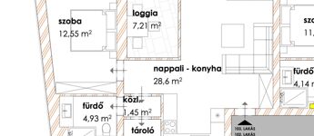 A 1 db amerikai konyhás nappalival, 1db hálószobával, 1 db fürdőszobával, közlekedővel, loggiával rendelkezik.