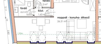A 1 db amerikai konyhás nappalival, 1 db fürdőszobával, közlekedővel, rendelkezik.