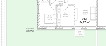 Mendén csodálatos zöld környezetben a Hétdomb lakóparkban, I. ütem második szakaszában megvalósuló új építésű zárt lakóparkban, A. kategóriás energiatakarékos ( hőszivattyús ) 16 lakásos társasházban, nettó hasznos 64,77 m² alapterületű, FÖLDSZINTI kertkapcsolatos lakást, SAJÁT 116 m² KERTRÉSSZEL kínálunk eladásra (C épület Földszint 2. Lakás).