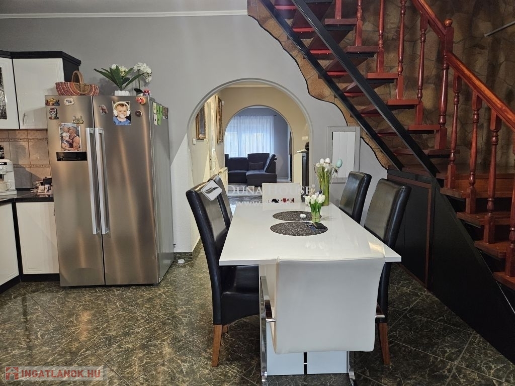 Igényes, teljes körűen felújított 2 szintes sorházi lakás Mohácson – tágas terekkel, télikerttel és külön hobbihelyiséggel!Eladásra kínálunk egy rendkívül jó állapotú, belső kétszintes sorházi lakást Mohácson, a belvárosától mindössze pár perc sétára. Az ingatlant pár évvel ezelőtt teljes körűen felújították, így azonnal költözhető, gondozott és tiszta állapotban várja új tulajdonosát.Az ingatlan főbb jellemzői:-140 m² hasznos lakótér (földszint ~90 m², emelet ~50 m²)- Tágas amerikai konyhás nappali és étkező közel ~40 nm- Világos, tágas, egybenyitott terek jelemzik- Modern konyhabútor gépesítve- Télikert, mely télen- nyáron kiváló teraszként is funkcionál- 3 hálószoba az emeleten, fürdőszobával- Külön hobbihelyiség az udvarban (~30 m²), jelenleg konditeremként funkcionál, de tökéletes hobby helyiség- Külön 12 m²-es tárolóhelyiség- Rendezett, térkövezett udvar, csendes környezet- Parkolás a ház előtt az utcán egy saját letérkövezett beállónMűszaki jellemzők:- Fűtés: gázcirkó, vegyes tüzelésű kazán és 3 darab klíma biztosítja a kellemes hőmérsékletet- Teljesen összközműves (víz, villany, csatorna)- A telek mérete kb. 300 m², a lakóingatlan pedig körülbelül 140 m² (hasznos alapterület)Az ingatlan teljesen tehermentes, rendezett tulajdoni viszonyokkal rendelkezik.Kiknek ajánljuk?Ideális választás lehet nagycsaládosoknak, többgyermekes családoknak, illetve azoknak, akik szeretik a tágas, világos tereket és egy külön életteret szeretnének hobbijaiknak, vállalkozásnak vagy szabadidős tevékenységekhez.Ne hagyja ki ezt a kiváló állapotú, igényes családi otthont Mohács egyik kellemes részén – hívjon bizalommal a megtekintésért!