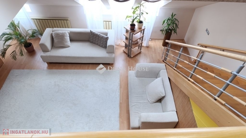 A 127m2-es tágas tetőtéri két szintes lakás várja új tulajdonosát. Miért jó a belvárosban lakni ?Mert minden egy karnyújtásnyira van , hivatalok, boltok, bankok, piac. De a Duna is csak pár lépés, ha esti sétára indulnánk.