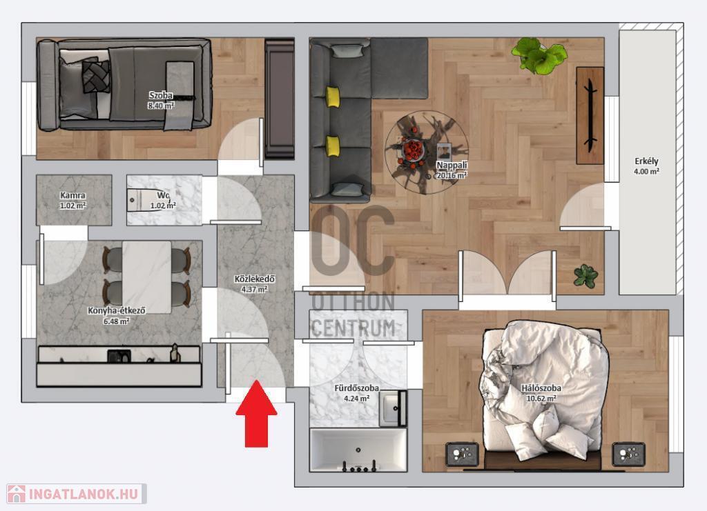 - 3 szobás.