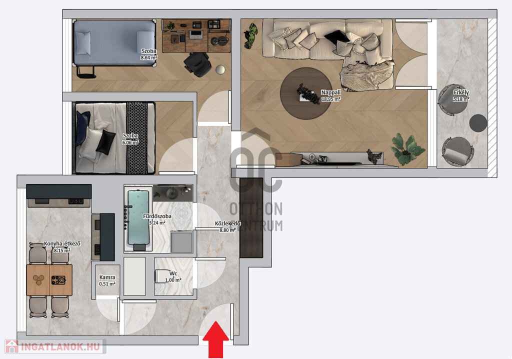 - A nettó 57 m2 alapterületű lakás, világos.