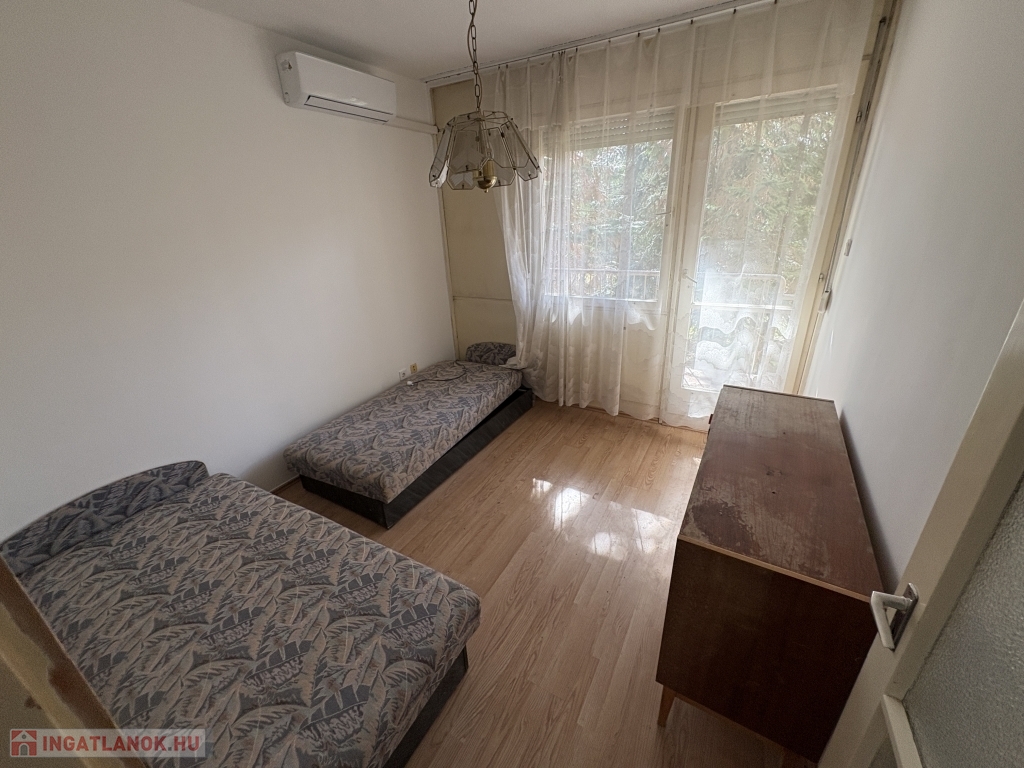 A kényelmet 2 db hűtő-fűtő klíma biztosítja egész évben. Az erkély ideális hely a pihenésre, a beépített szekrények praktikus tárolást kínálnak, a redőnyös fa nyílászárók pedig tovább növelik a lakás komfortját.