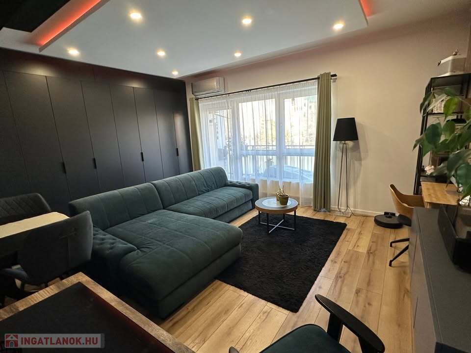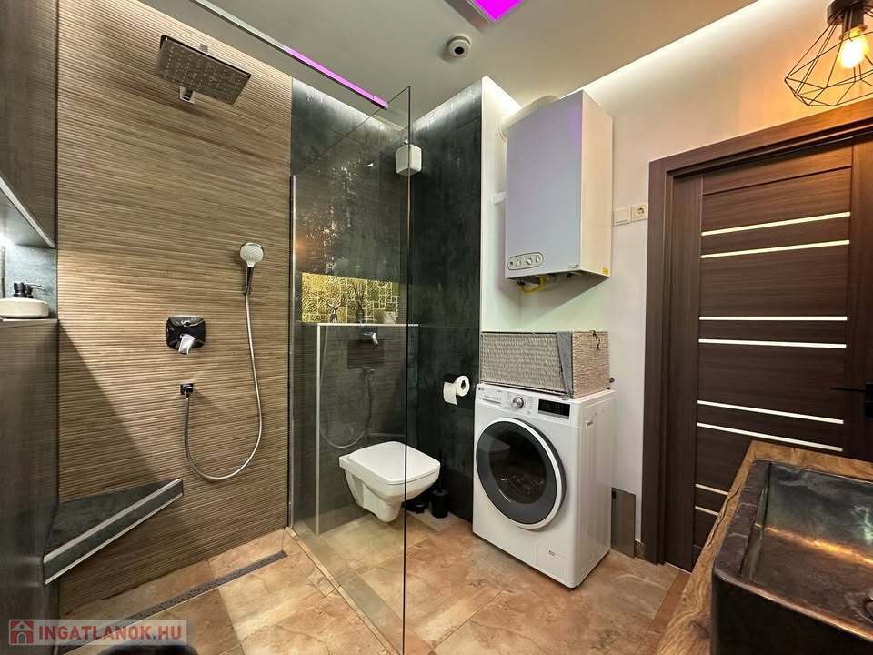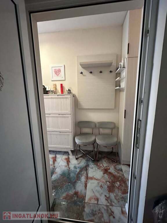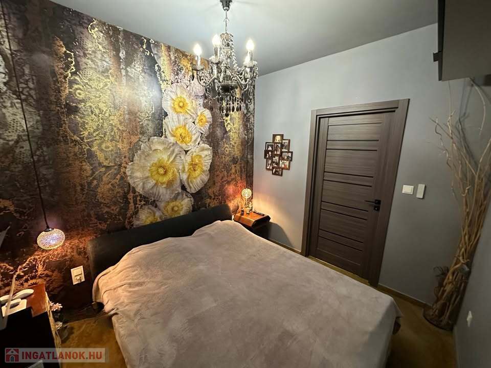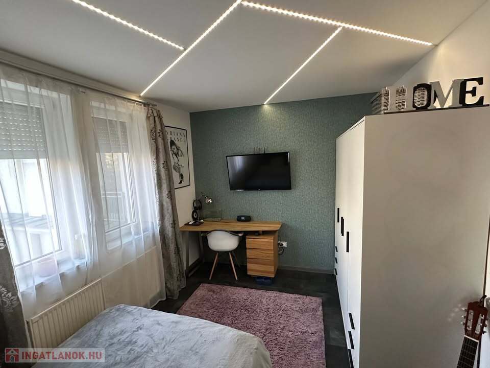 Észak - nyugati fekvésű, műanyag nyílászárók, laminált padló és csempe. Egy légtérben nappali, konyha, modern konyhabútorral, egy kisebb és egy nagyobb szoba, külön wc és fürdőszoba, melyben szintén kialakításra került egy wc. Mindenhol rejtett vezetékek, melyek szintén 5 évvel ezelőtt ki lettek cserélve.