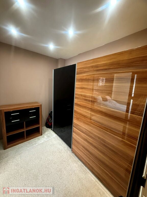 A kisebbik szoba jelenleg gardróbként használatos, de igény szerint könnyedén visszaalakítható külön hálószobává.