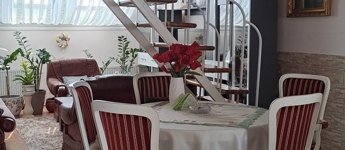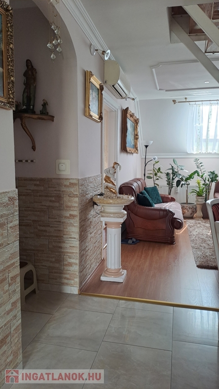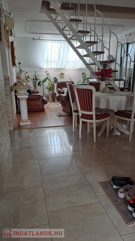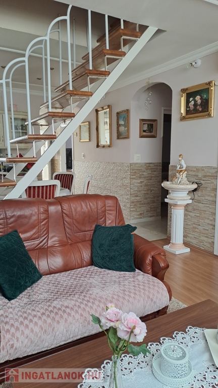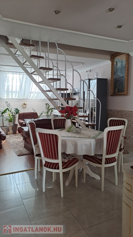 A lakás világos, tágas terekkel rendelkezik. 4 szoba + nappali, konyha + étkező, kamra, fürdő és wc külön helyiségben, műanyag nyílászárók, redőny, reluxa, rovarháló, klíma. Laminált padló és csempe burkolatú. Fűtése: egyedi gázfűtés. Az alsó szinten van: 2 hálószoba, nappali, konyha, kamra, fürdő, wc. A tágas fürdőszobában fürdőkád és zuhanykabin. A felső szinten 2 hálószoba. A lakáshoz egy kisebb erkély és egy tágasabb terasz tartozik. Közös tároló. A mélygarázsban autóbeálló bérelhető. A társasház jó elhelyezkedésű, kedves szomszédok, jó lakóközösség. A lakás igényes, modern kialakítású, tehermentes.Az ingatlan azonosítója: 97977Érdeklődni: +3670/328-8474 Az ingatlan azonosítója: 97977 Érdeklődni: +3670/328-8474
