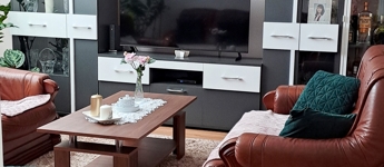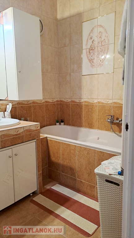 Alsó szint: nappali, 2 hálószoba, konyha + étkező, kamra, fürdőszoba (káddal és zuhanykabinnal), külön WC