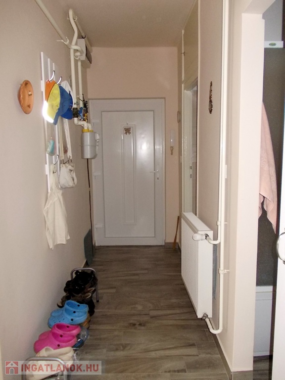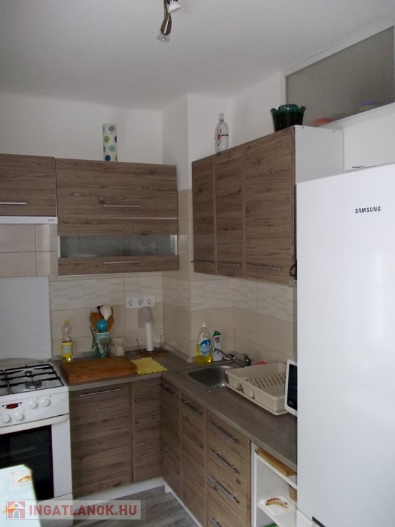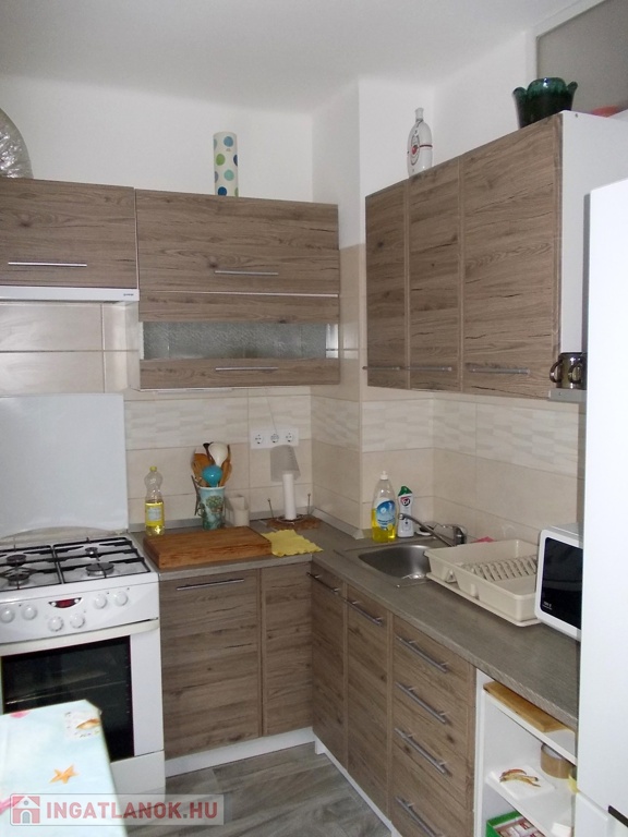 A lakás 2 tágas szobával rendelkezik, járólap és laminált parketta burkolatú. Műanyag nyílászárókkal és rovarhálóval felszerelt, újszerű, szép konyhabútorral. A fürdőszoba felújításra került. A gázkazán 3 éve lett cserélve, egyedi gázfűtésű. Tartozik még hozzá egy 8 m2-es saját tároló.