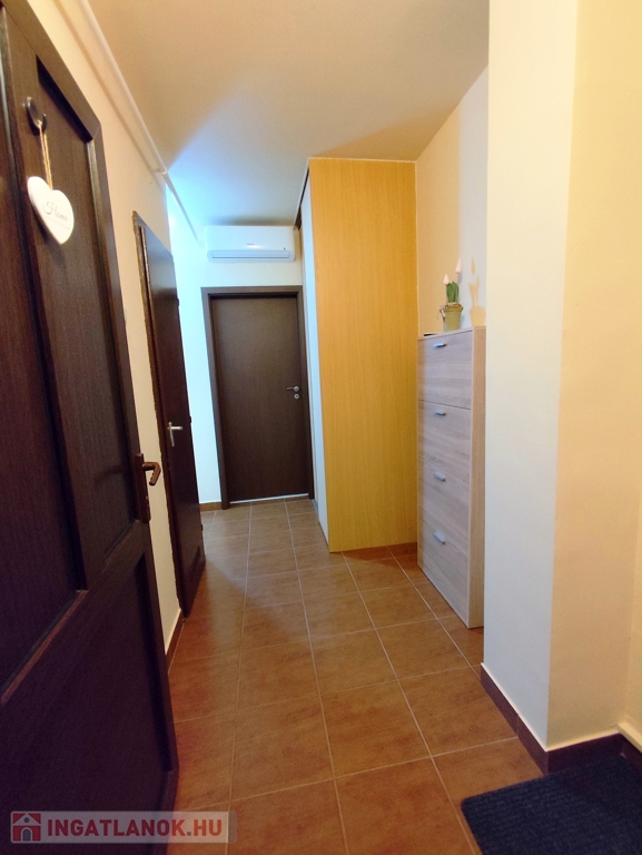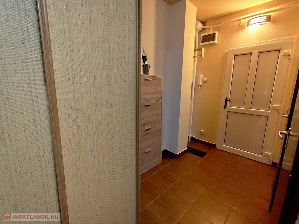 A lakás járólap és laminált parketta burkolattal rendelkezik, műanyag nyílászárók, klíma biztosítja a komfortot. A felújított, zuhanyzós fürdőszoba, az újszerű beltéri ajtók, valamint a szobában található beépített szekrény tovább növelik az ingatlan értékét. A lakáshoz közös tároló is tartozik.