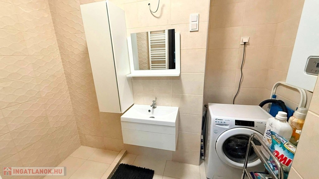 Egyedi gázfűtés, radiátoros hőleadással Inverteres klímaberendezés 3 rétegű üvegezésű műanyag nyílászárók, redőnnyel Egyedileg tervezett, beépített, gépesített konyhabútor Minőségi burkolatok az egész lakásban Fürdőszobában épített zuhanyzó, WC külön helyiségben Egyéb előnyök: Alacsony rezsiköltség