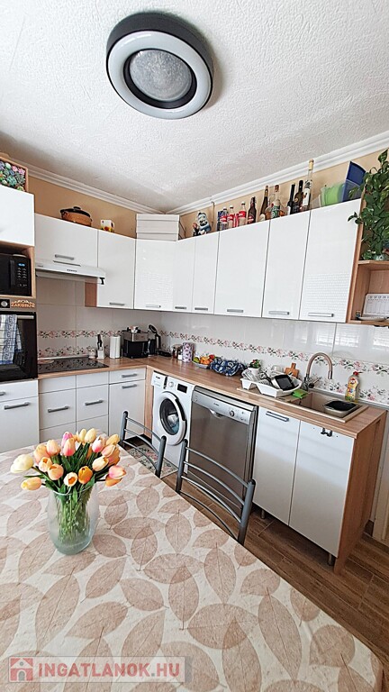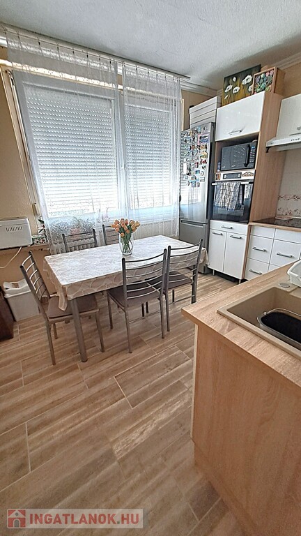 Eladó egy 77 nm-es, jó állapotú, szigetelt panel lakás a belváros közelében, csendes, rendezett társasház 3. emeletén.