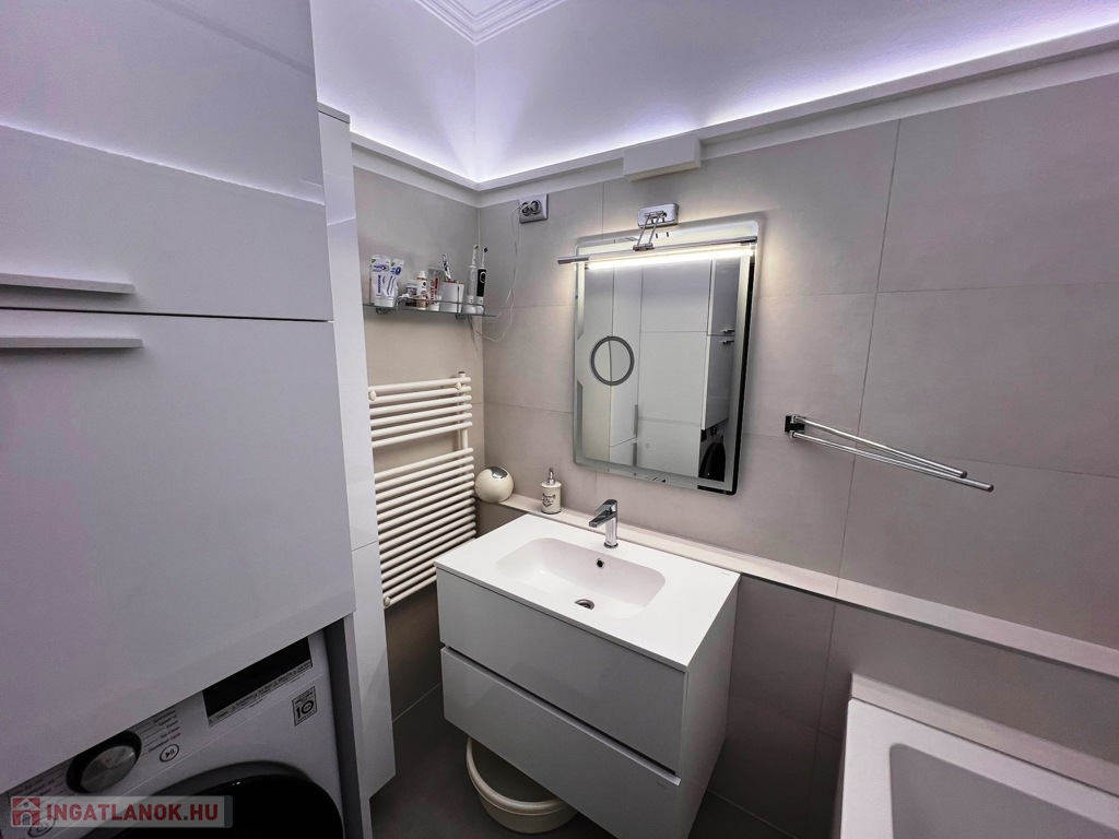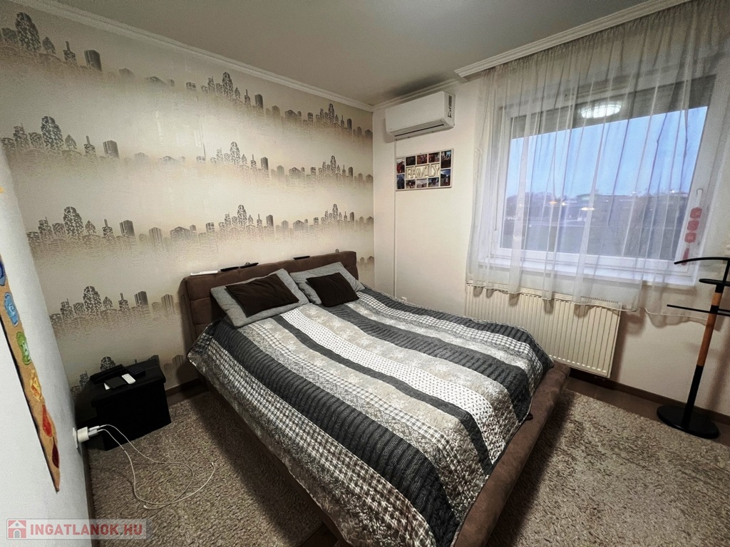 Tégla építésű lakás liftes társasház 2. emeletén található, házközponti fűtéses egyedi mérővel, klímával, riasztóval redőnnyel szerelt műanyag nyílászárós, laminált padló, járólap burkolatú.