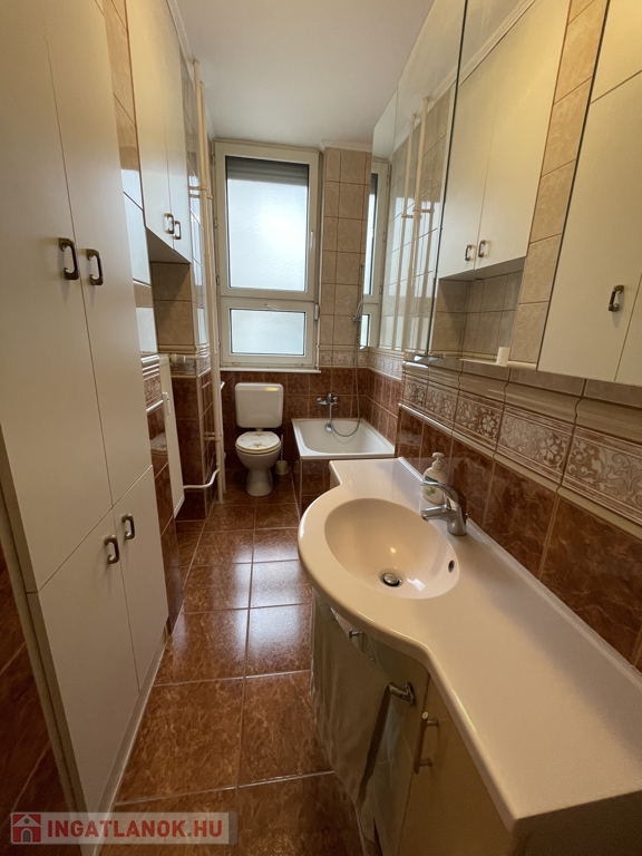 A fürdőszoba felújított, a konyhában egyedi konyhabútor és tűzhely található. A folyosón praktikus beépített szekrény segíti a mindennapi tárolást.