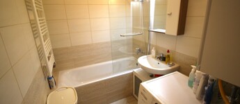 tágas fürdőszoba (WC külön helyiségben)