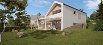 Pécs egyik legcsendesebb, erdőszéli részén, Felsőgyükésben eladó két exkluzív, újépítésű lakás!A neves tervező által megálmodott, elegáns, mindössze kétlakásos tégla társasház 2026 végén készül el. A belső kétszintes, kulcsrakész otthonok 149,5 m²-esek, saját hőszivattyúval, napelemmel, padlófűtéssel és plafonhűtéssel, rendkívül alacsony fenntartási költséggel.Főbb jellemzők:3 hálószoba + tágas nappali-konyha-étkeződupla komfort, háztartási helyiség35 m²-es dupla garázs + gépkocsi beálló90 m² teraszfelület + erkélyeksaját, kizárólagos használatú kert (630 és 582 m²)prémium burkolatok, szaniterek és nyílászárókmodern, elegáns kőburkolatos homlokzatIgazi ritkaság Pécsett: luxuskategóriás, energiatakarékos, erdőközeli otthon, minimális rezsivel.