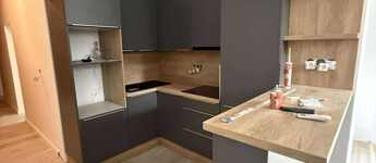 Amerikai konyhás nappali minőségi beépített bútorokkal, gépesítve.