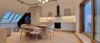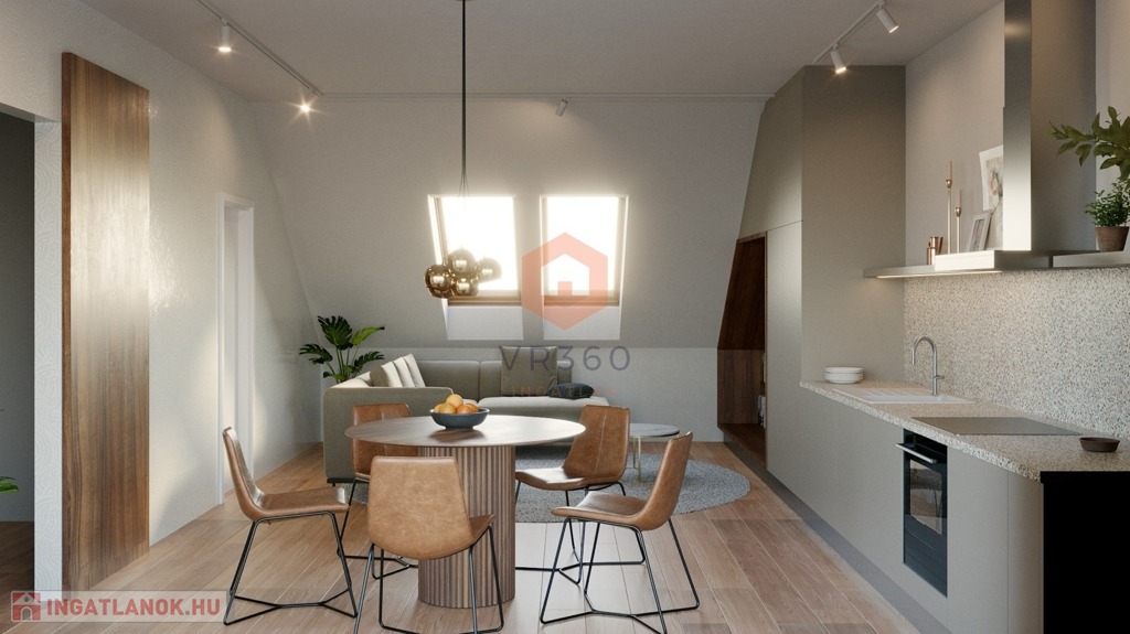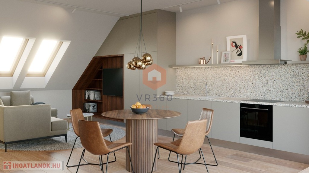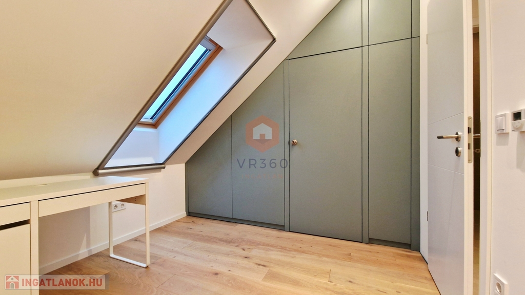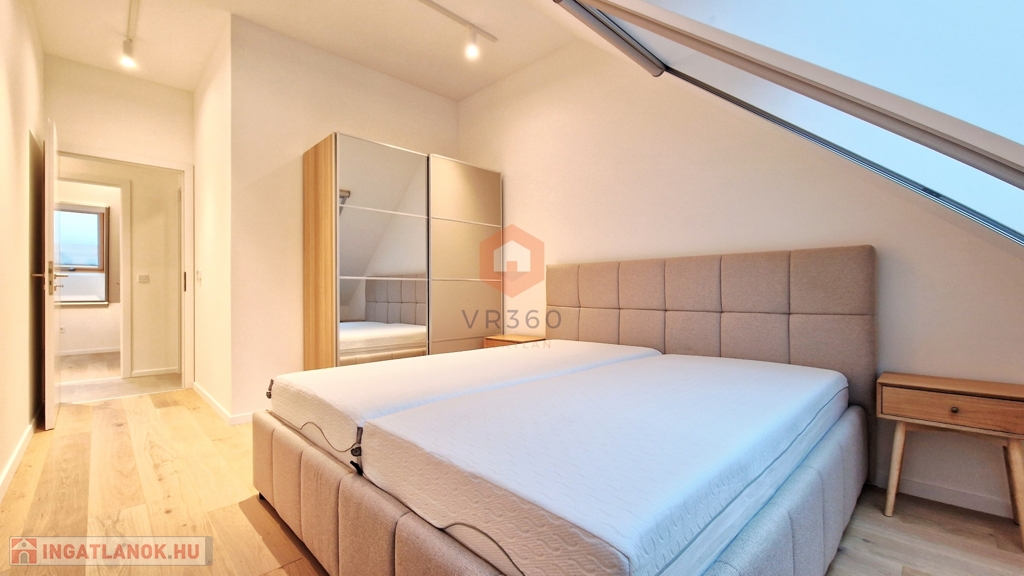 Nettó 63,5 m2, bruttó 93,5 m2-es tetőtéri lakás, két hálószobával + 20m2 erkély