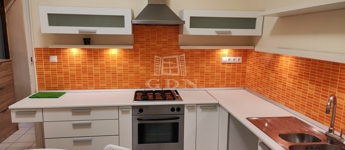 A fürdőben kád és zuhany is kiépítésre került.Az egyik szoba csaphornyos, a másik laminált parkettás, a többi helyiség kerámia burkolatú.